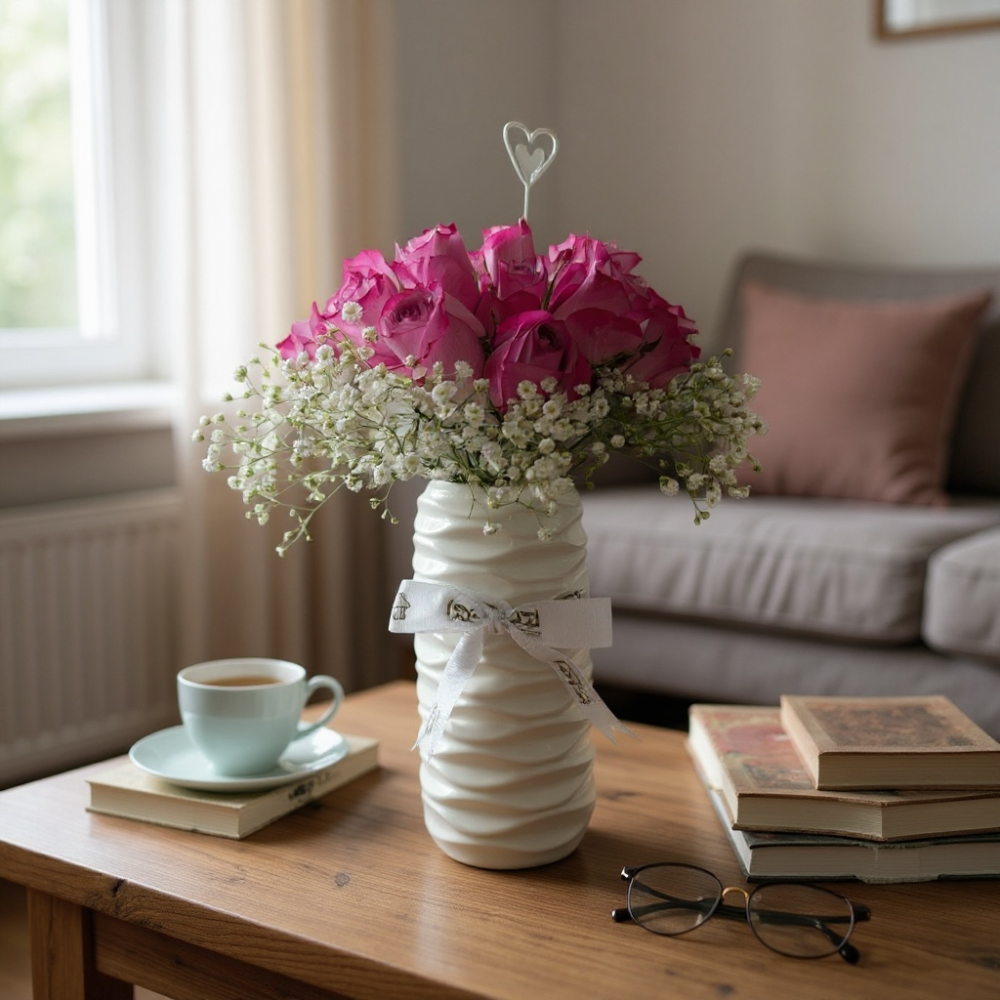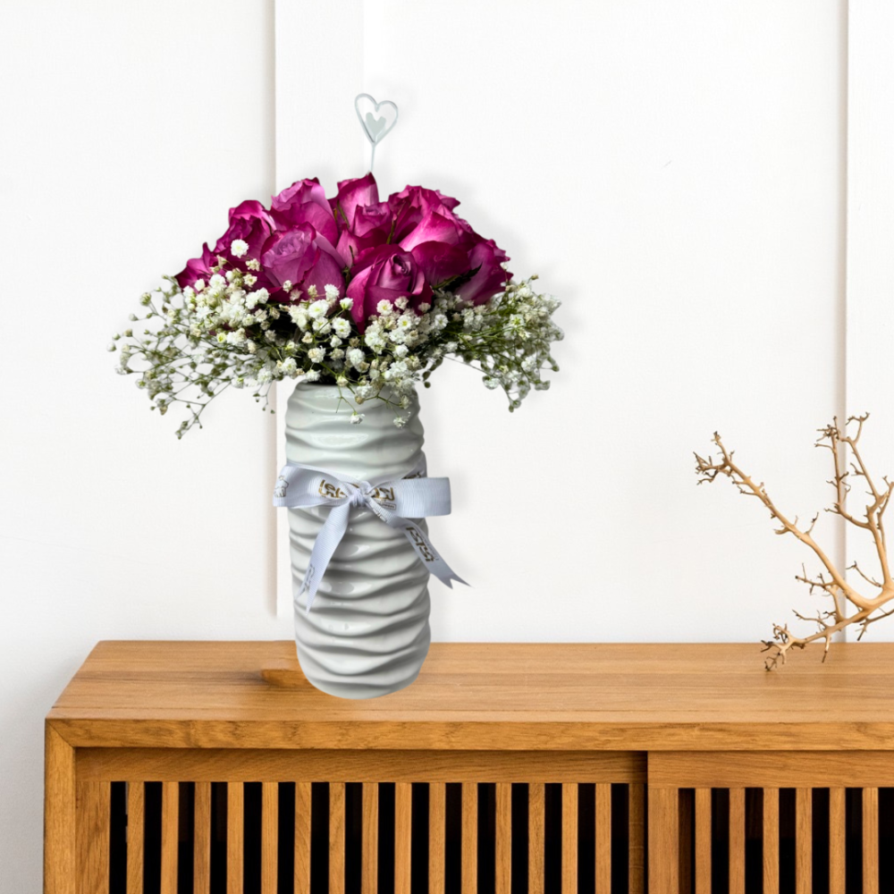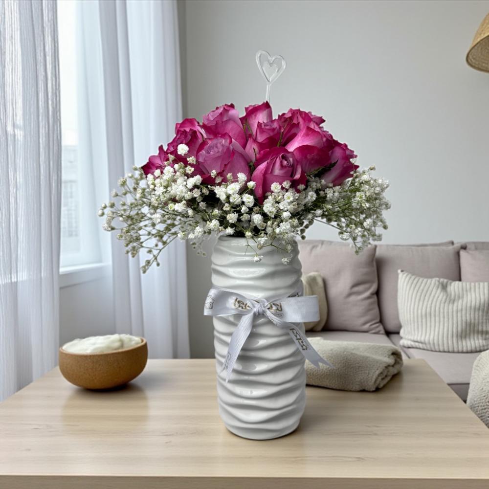 باقة مختارة من ورد الجوري تزينها ازهار الجيبسون الصغيرة