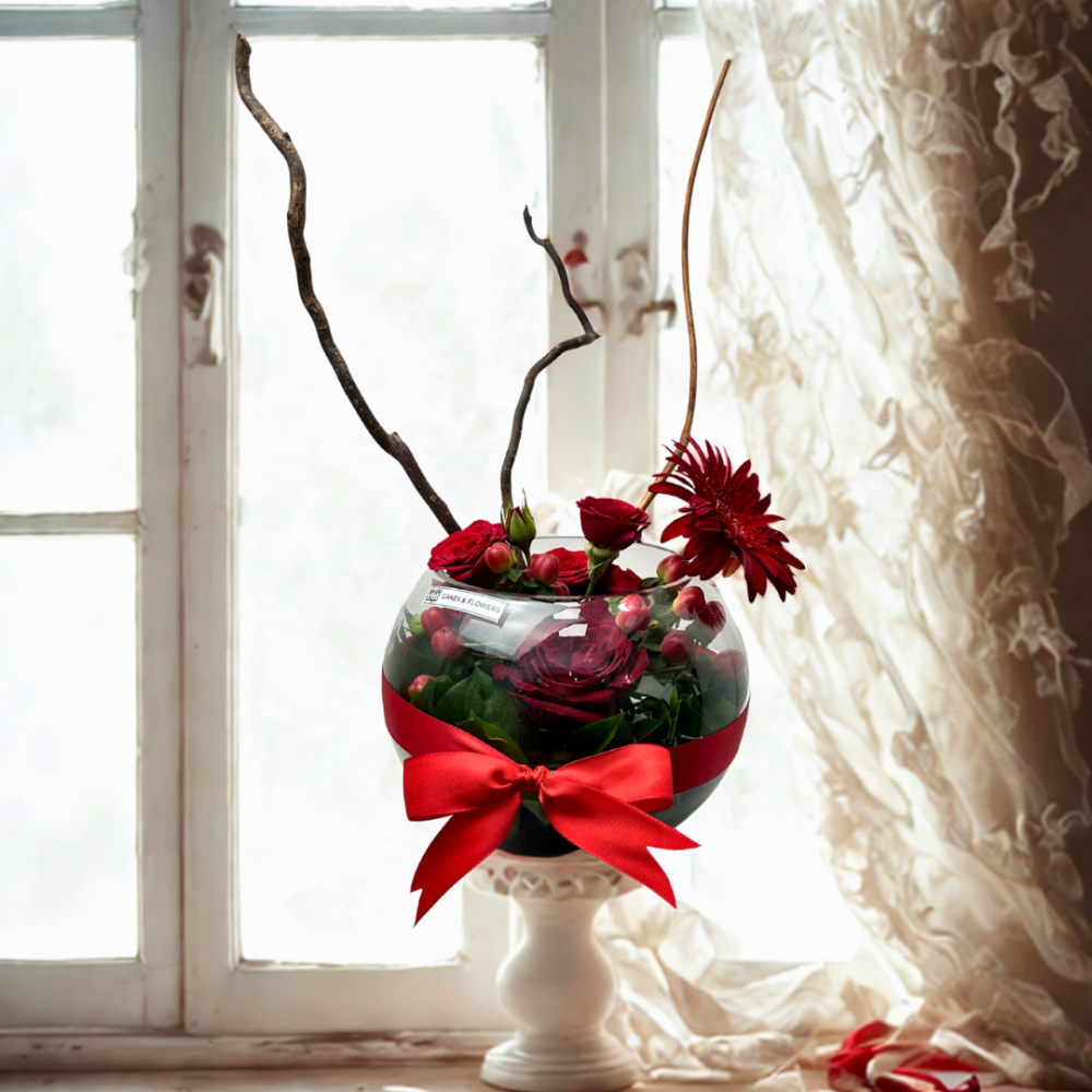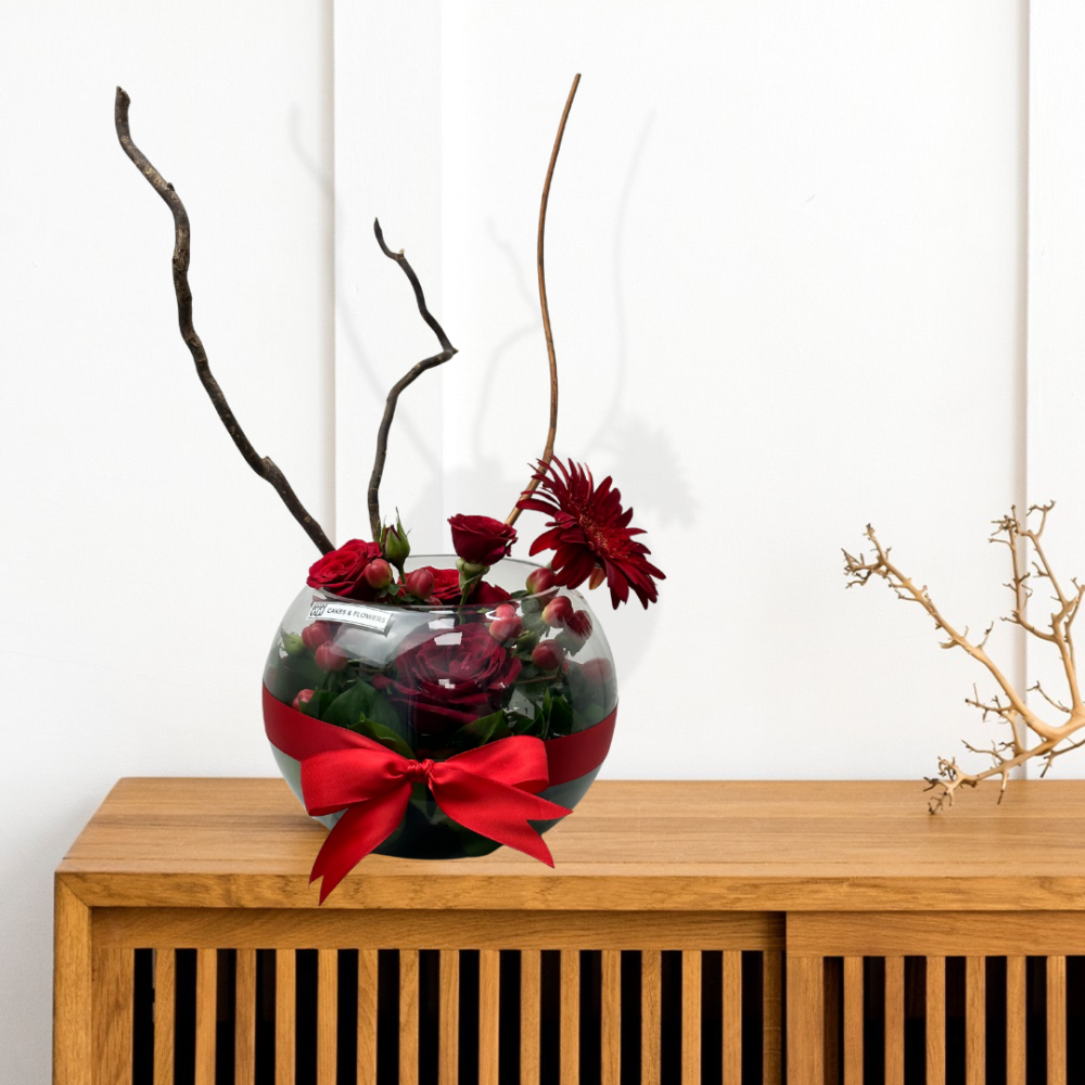 ✨ اجعل كل زاوية تنبض بالأناقة مع فازة أنجليكا من ليلي. تصميم فاخر يجمع بين الورد الاحمر بترتيب فني داخل فازة شفافة عصرية