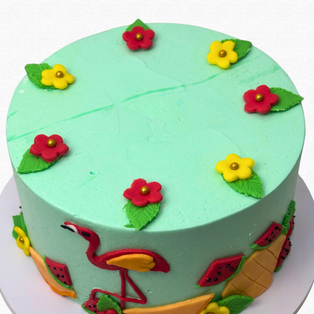 وألوانه الزاهية التي تبث الفرح في كل زاوية. مثالي للحفلات الصيفية، أعياد الميلاد، أو أي مناسبة تبحث فيها عن كيك فريد يخطف الأنظار.