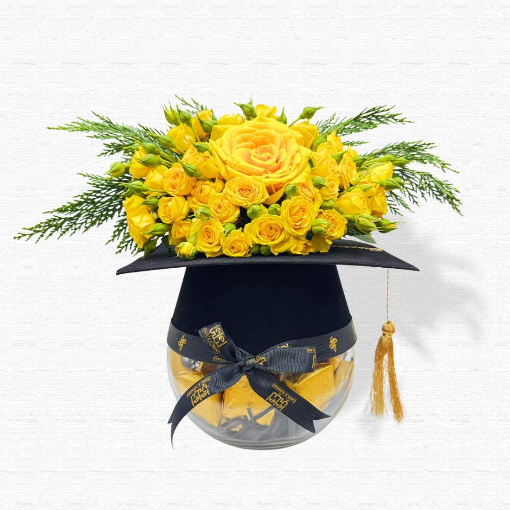 احتفل بلحظة التخرج بأناقة مع فازة التخرج من لي لي للهدايا. تتميز هذه الفازة بتصميم راقٍ يجمع بين قبعة التخرج الكلاسيكية ومن البيبي روز الأصفر التي تضفي إشراقة مبهجة، بالإضافة إلى حبات الشوكولاتة الفاخرة التي تضيف لمسة من الحلاوة والرقي. الفازة مثالية كـ هدية تخرج مميزة تعبّر عن الفخر والفرح، وتناسب جميع الأعمار. سواء كنت تبحث عن قطعة تزيينية لمكتب الخريج أو هدية أنيقة تقدمها في الحفل، فإن هذه الفازة تعكس الذوق والجودة. اطلبها الآن من لي لي وتمتع بتوصيل سريع وتغليف فاخر.