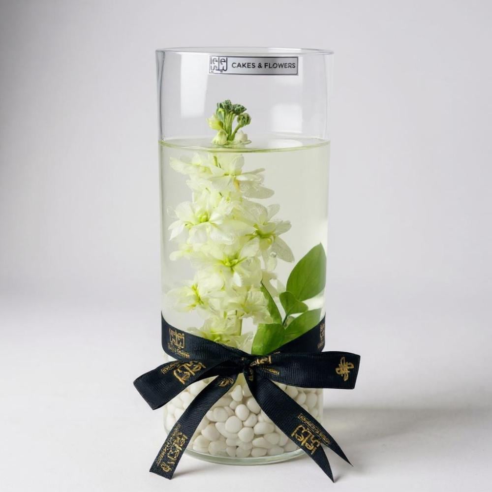 - فازة زجاجية شفافة بارتفاع 25 سم