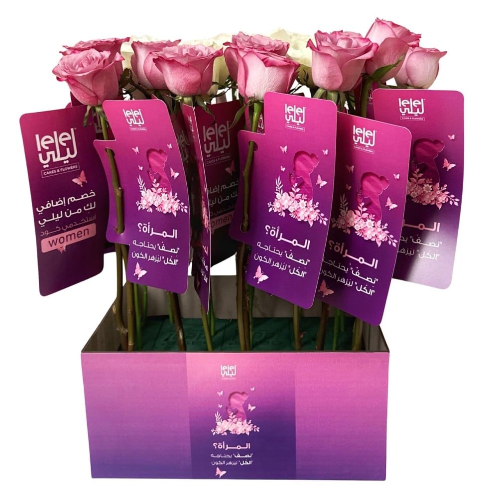 اطلبوا الآن بوكس التوزيعات لـ #يوم_المرأة المكون من ٢٥ وردة جوري مع بطاقة بعبارة معبرة للمرأة.