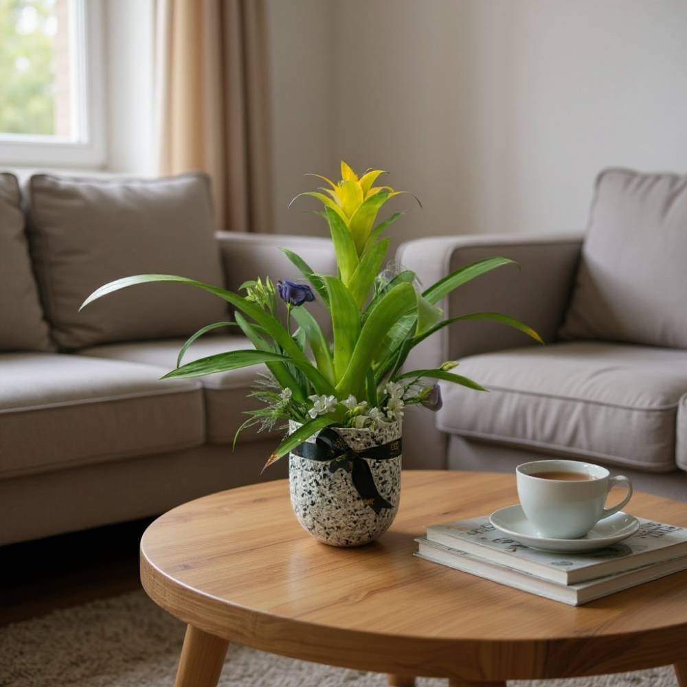 تمتزج في هذا المنتج الفريد روعة التصميم العصري مع فازة صفراء أنيقة تُضفي إشراقة على كل مناسبة.