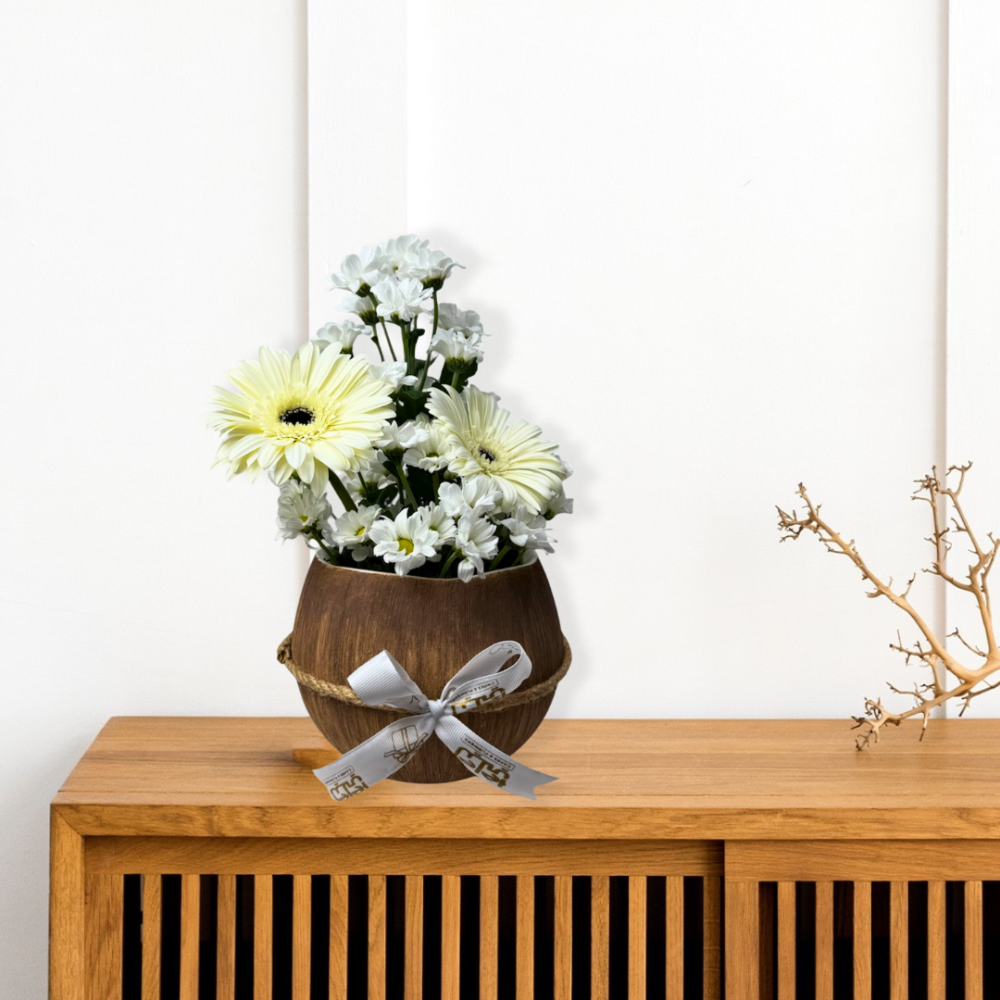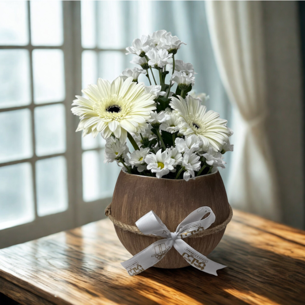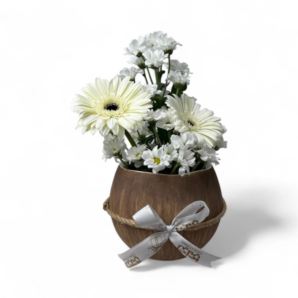 Add a unique touch to your occasions with the Coconut Vase from Lily, Rose, and Cake. This elegant ceramic vase comes in a medium size, perfect for decorating any space, making it the perfect gift for loved ones and friends. With a modern design and high quality, the Coconut Vase offers an aesthetic value that adds a special charm to every occasion. Order now and enjoy a fast and reliable delivery experience!
