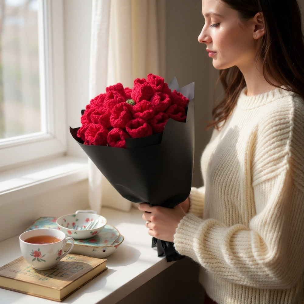 Enjoy the beauty of handcrafts with a crochet bouquet from Lily. An elegant round crochet doily measuring 30 cm in diameter.