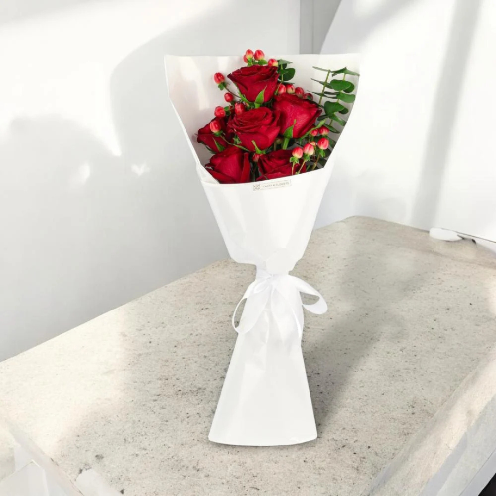 اجعل لحظاتك أكثر تميزًا مع باقة “أحبك مع كيك” من ليلي. تضم هذه الباقة المدهشة ورد جوري أحمر مشرق يضيف لمسة من الأناقة والرومانسية، بالإضافة إلى كيكة قلب خلابه بنكهة التوت البري الطازج، التي تقدم لك طعمًا لا يُقاوم. هذا المزيج المثالي من الورد الطازج والكيك اللذيذ يجعل “أحبك مع كيك” الهدية المثالية للمناسبات الخاصة. استمتع بجودة عالية، تصميم مميز، وطعم لا يُنسى مع كل طلب.